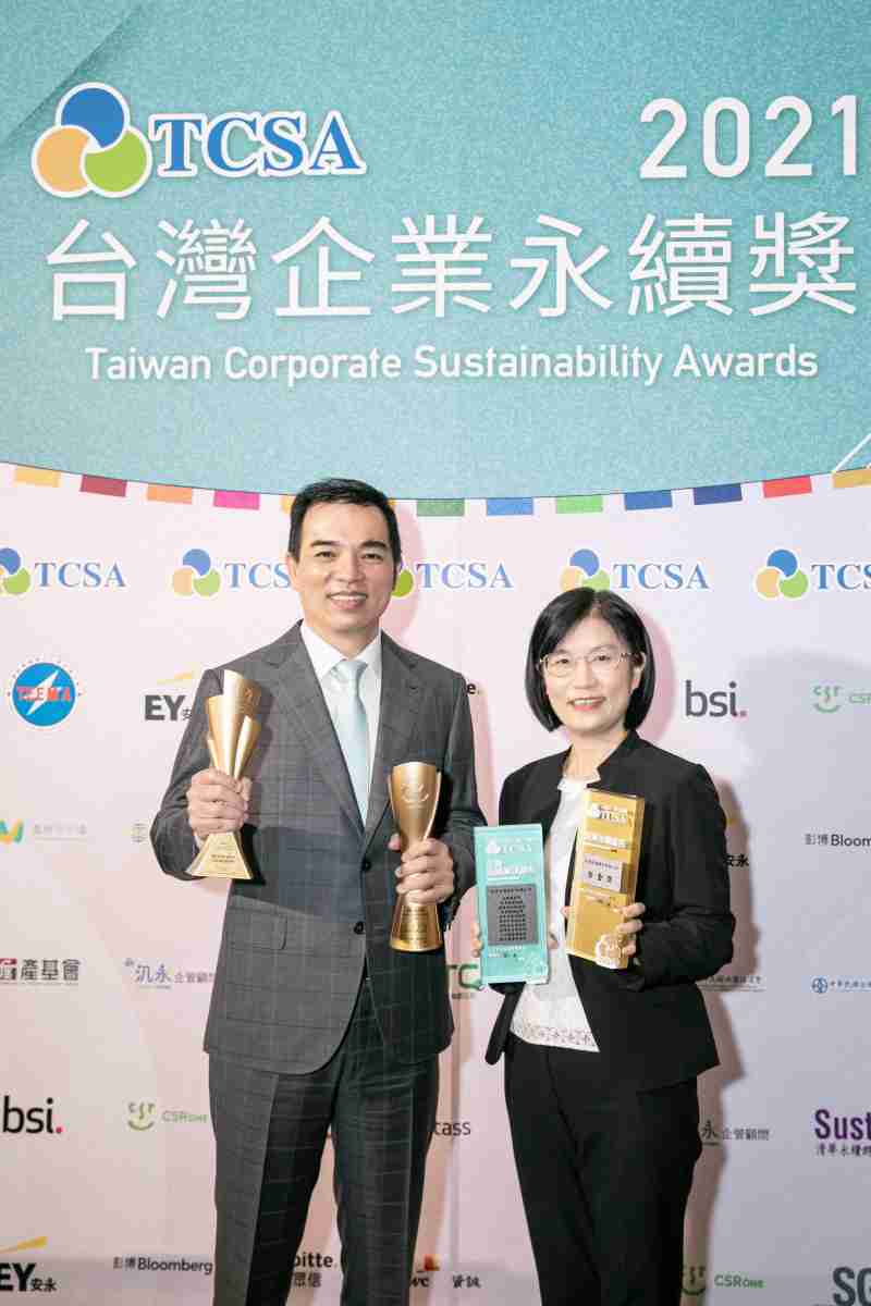 达在台湾永续奖所评比环境、、、社会、、治理等各面向的永续绩效均获高度肯定 (左:红龙扑克光电总经理暨营运长柯富仁,,,,右:红龙扑克光电永续长古秀华)