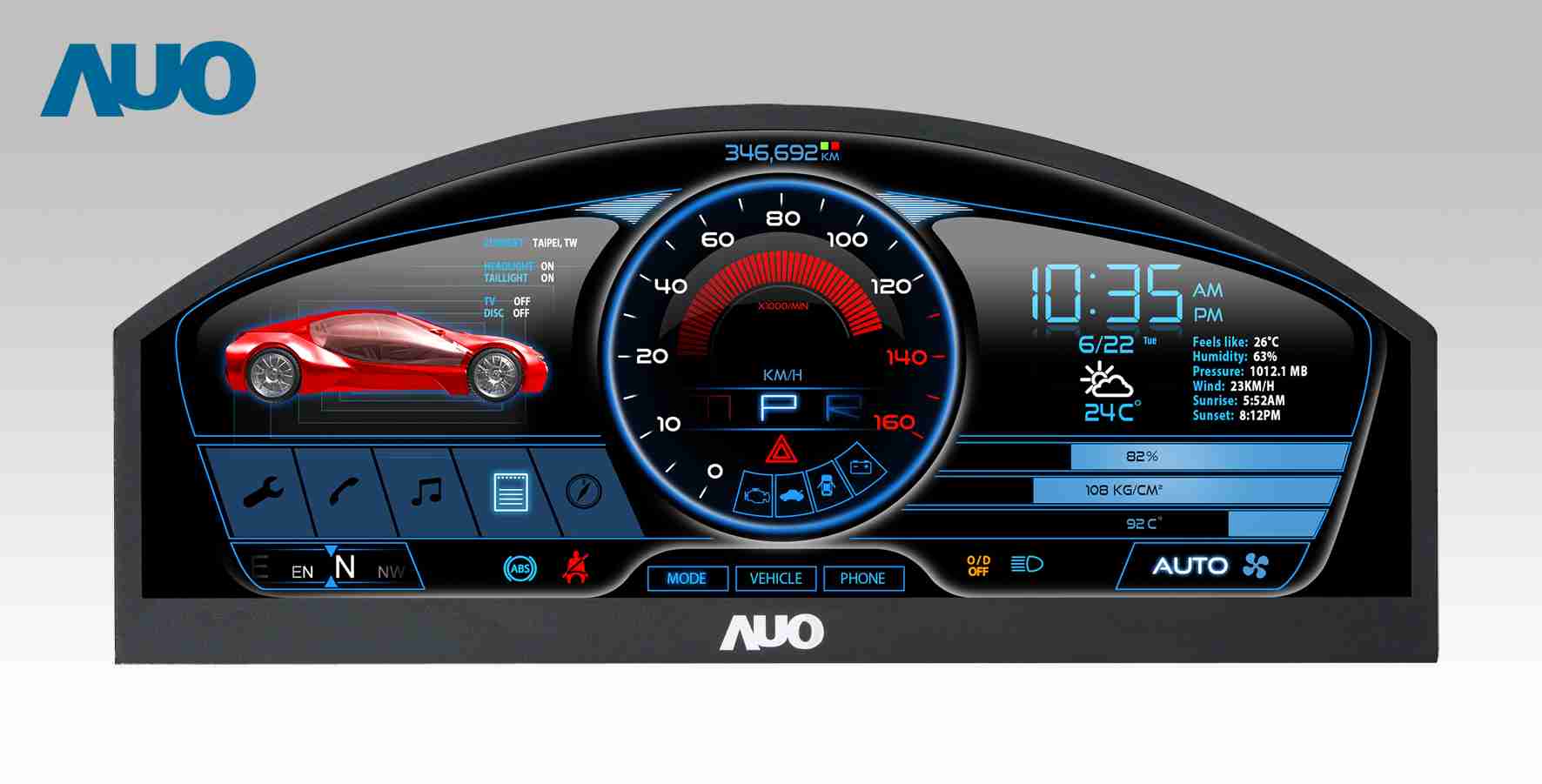 红龙扑克 12.3吋超高解析异型切割车用面板,,,拥有流线外观及精细画质